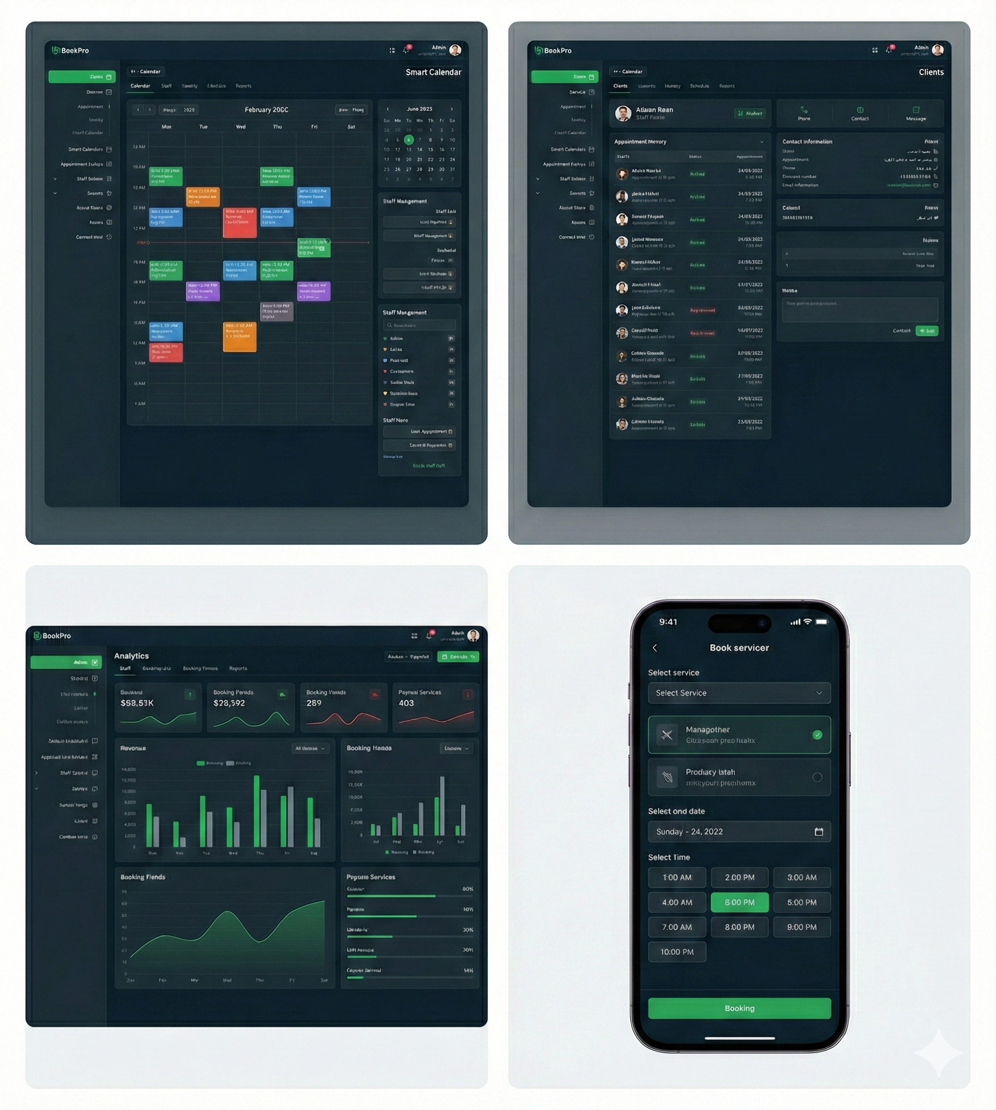 - جدول مواعيد مضبوط حسب الموظفين والتوفر.